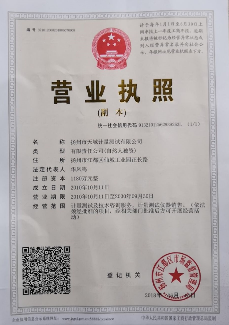 揚州市天域計量測試有限公司,坐落在交通便利的揚州市江都區仙城工業園,成立于2010年10月,2011年11月正式獲取中國合格評定國家認可委員會認可(授權),注冊號:CNAS L5296。近幾年的發展,實驗室已具備了較大規模,并形成了集計量器具檢測,計量技術咨詢和計量器具銷售為一體的專業化技術機構,客戶覆蓋蘇南、蘇北、和浙江,安徽部分地區,客戶群總量達到了上千家企事業單位。實驗室建立健全了一套較為完整的內外部質量管理體系,至今未發生糾紛和客戶投訴事件。